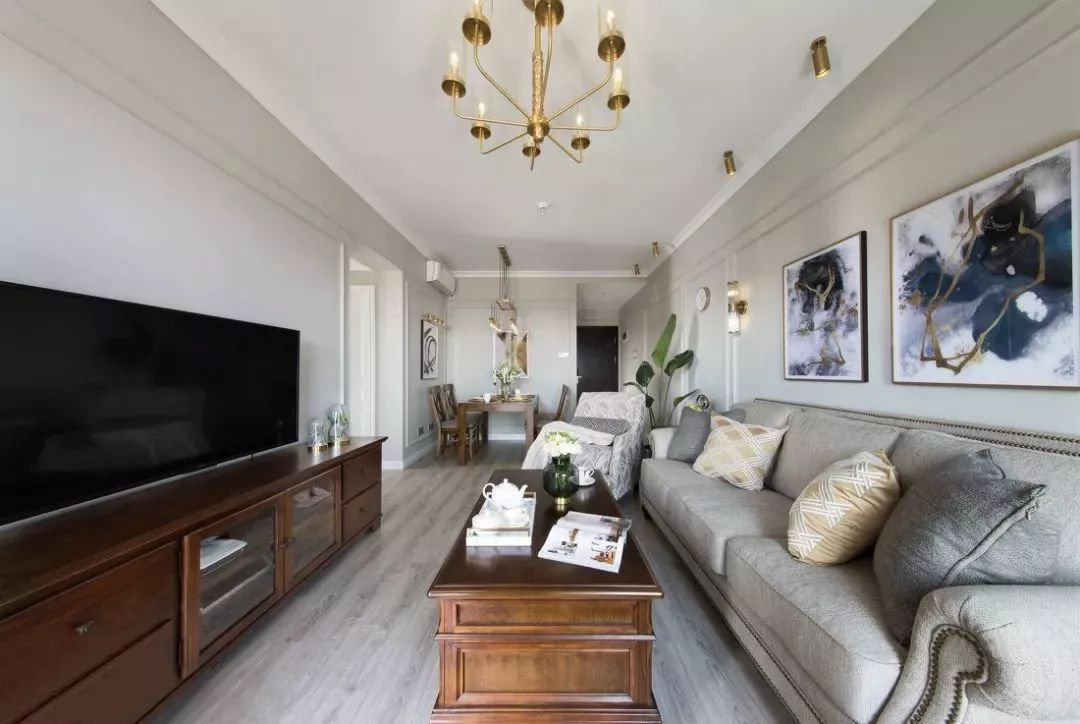 - 93㎡現代美式小三居,嵌入式收納柜和石膏線(xiàn)背景墻簡(jiǎn)潔實(shí)用又漂亮