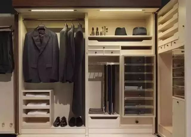 內衣、領(lǐng)帶和襪子可用專(zhuān)用的小格子,既有利于衣物保養,取物也更直觀(guān)方便;毛衣可放在較深的抽屜里;褲子則用專(zhuān)用的掛架存放。