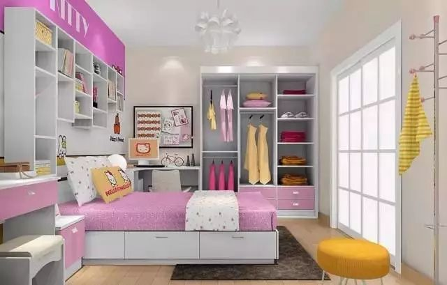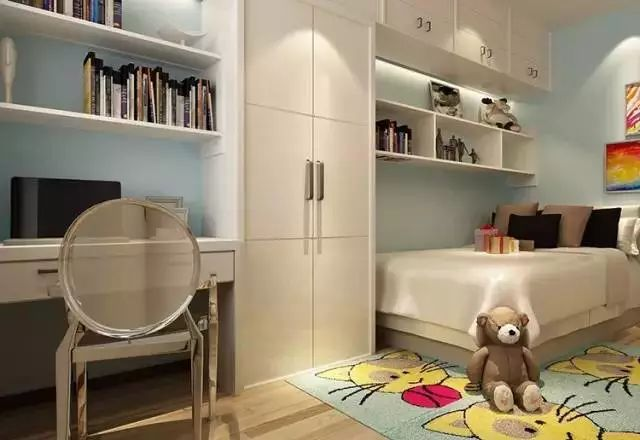 最好能在衣柜設計時(shí)就考慮一個(gè)大的通體柜,只有上層的掛件,下層空置,可方便兒童隨時(shí)打開(kāi)柜門(mén)取放和收藏玩具,滿(mǎn)足兒童好玩的心態(tài)。