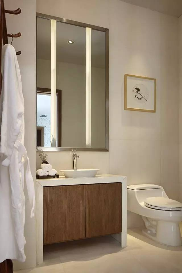 雙開(kāi)門(mén)式梳妝鏡,木格柵拉門(mén)雅趣十足。