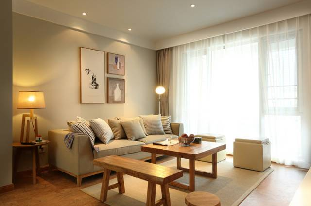 整屋原木風(fēng),偏日式的設計,客廳做了簡(jiǎn)單大氣的無(wú)吊頂設計,一眼望去就很舒服。