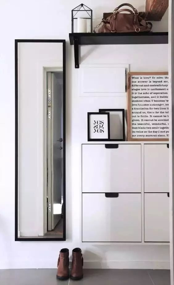 玄關(guān)雖然在家居中面積不大,卻是進(jìn)出的必經(jīng)之路,同時(shí)也是展示家居風(fēng)格的點(diǎn)睛之處。比起進(jìn)門(mén)后鞋子踢得滿(mǎn)地都是,不如在玄關(guān)設置鞋柜,這類(lèi)設計低調實(shí)用。也可以?huà)鞄追幸庠⒌膾飚?huà),給初次到來(lái)的朋友一些小小的驚喜。