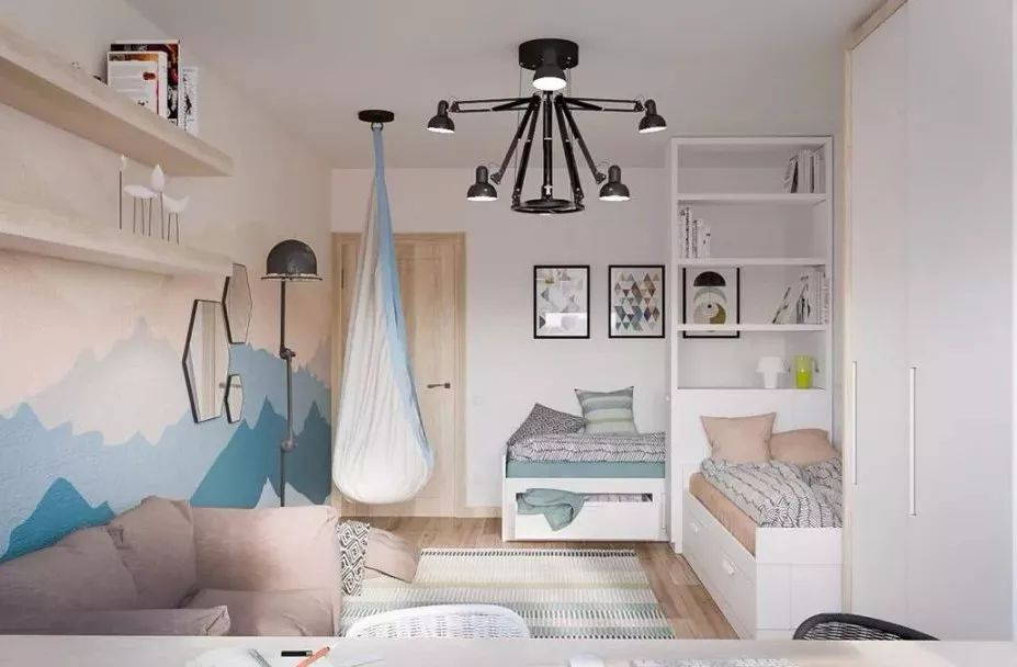 即使有兩個(gè)房間可以留給孩子使用,如果性別相同,年齡差也不大,也可以考慮一間做游戲/學(xué)習室,一間做臥室,特別在幼兒階段,比一人一間更加容易設計的出彩,兩個(gè)孩子,一起做游戲,一起睡覺(jué),也不會(huì )覺(jué)得太孤單。