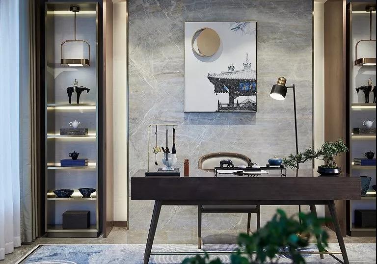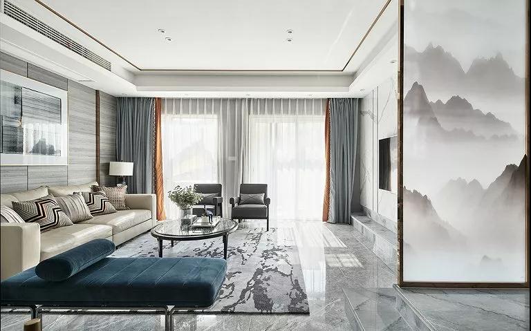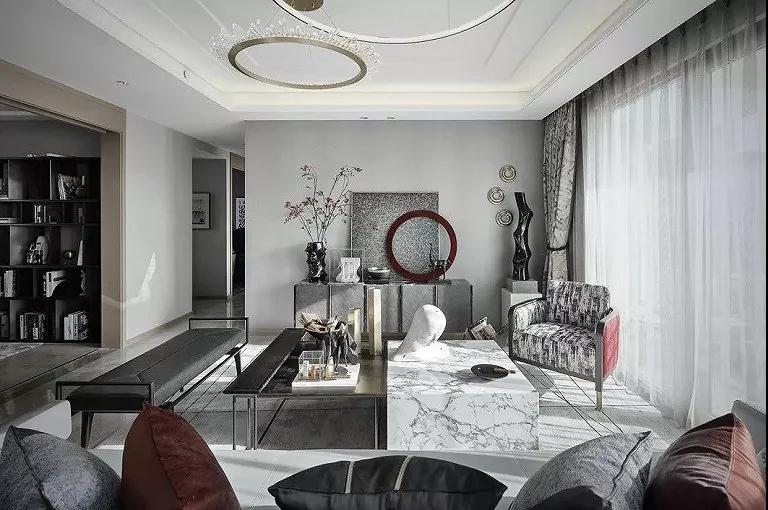 擁有輕奢氣質(zhì)的中式風(fēng)格,在選材上則大膽地加入一些現代材質(zhì),如金屬、玻璃、皮質(zhì)、大理石等,讓空間在保留古典美學(xué)的基礎上,又進(jìn)行時(shí)髦的現代演繹,使空間質(zhì)感變得更加豐富。