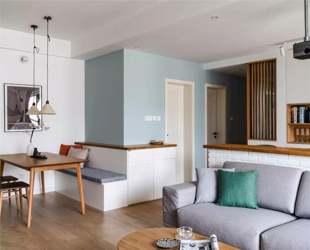 ▲ 餐廳卡座后方裝了一個(gè)轉角餐邊柜,將轉角處的走廊空間利用起來(lái),為小空間帶來(lái)了豐富實(shí)用的收納。