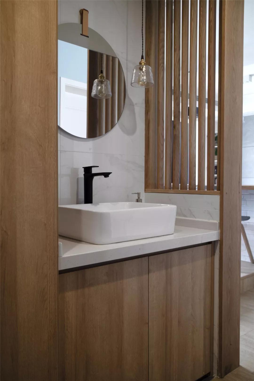 ▲ 在辦公休閑區后方的這個(gè)位置設計了洗手盆,為小衛生間騰出更加舒適的衛浴體驗。