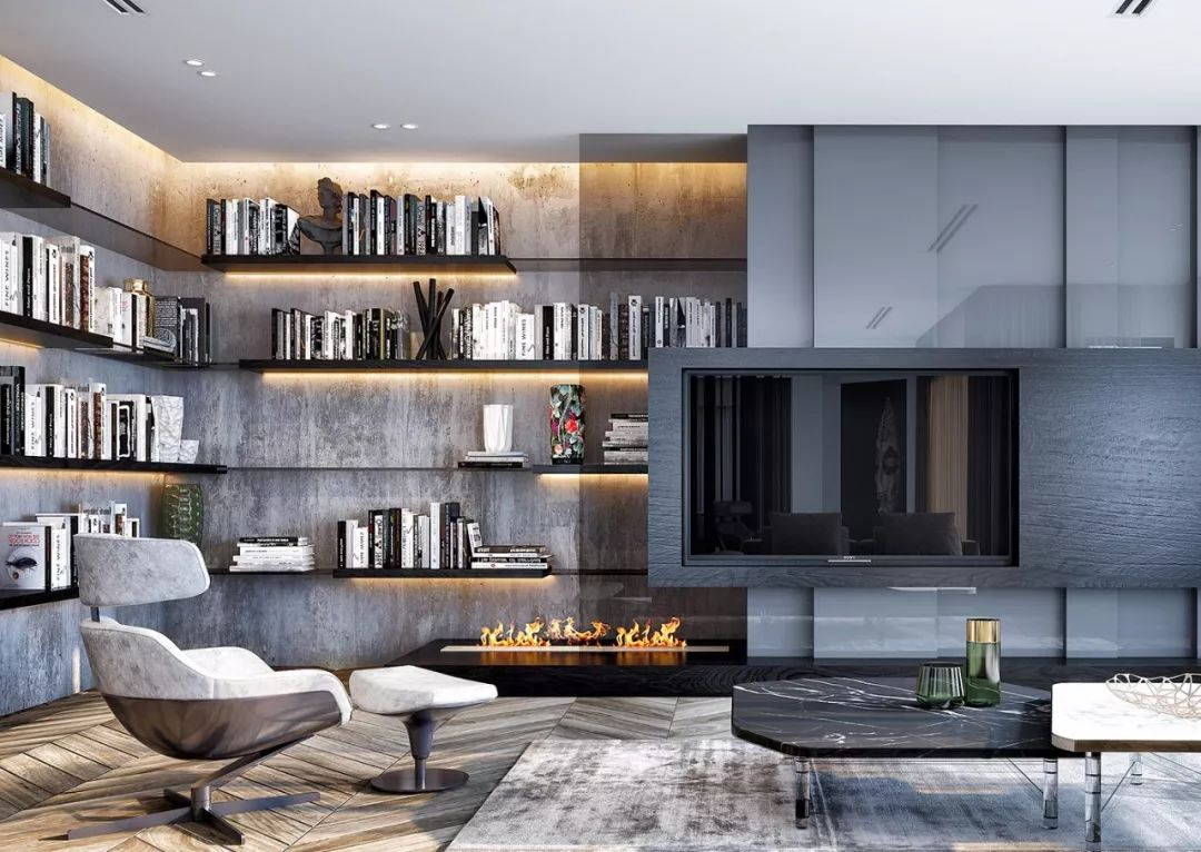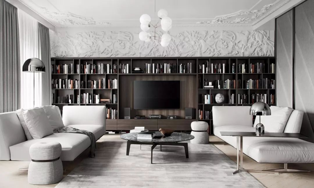 從現代居家環(huán)境的結構來(lái)講,如果想完成大規模的藏書(shū)。最有效的辦法就是在客廳中制作書(shū)架墻。想實(shí)現這個(gè)愿望也不難。只需有效地利用電視背景和沙發(fā)背景,設置一個(gè)有型有款的書(shū)架墻,再加一個(gè)舒適的沙發(fā),就足夠了。