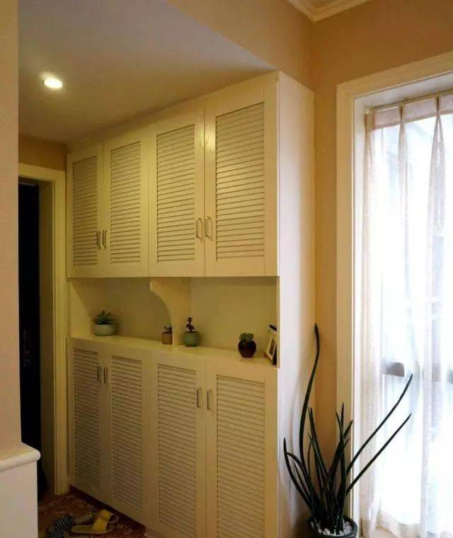 鞋柜的下層門(mén)建議用百葉門(mén),因為這樣透氣通風(fēng),如果做成封閉式的,長(cháng)期下來(lái),鞋子的異味就是充滿(mǎn)整個(gè)柜子。